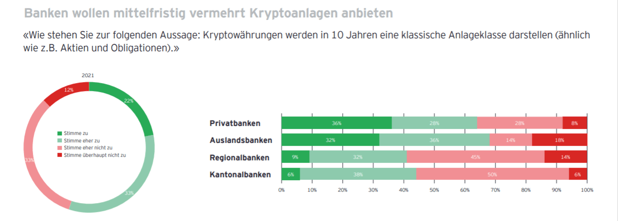 Kryptowährungen haben ein hohes Wachstumspotenzial. In den letzten Jahren ist die Adoption enorm vorangeschritten. In El Salvador ist Bitcoin gesetzliches Zahlungsmittel, während China jegliche Krypto-Transaktionen als illegal deklariert hat. Auch im deutschsprachigen Raum hat sich einiges getan. Die globale EY-Organisation hat im Rahmen einer Studie für das neue Jahr auch die Haltung von 90 Schweizer Banken gegenüber Kryptowährungen untersucht.